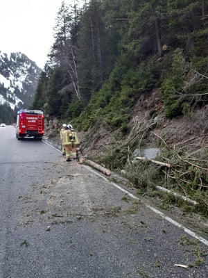 Eingerückt in der Halle vom Brandeinsatz erreichte uns die Meldung über einen umgestürzten Baum auf der Zufahrtsstraße zum Stubaier Gletscher. Eine kleine Mannschaft machte sich umgehend auf den Weg in den hinteren Teil unserer Einsatzgebietes. Vor Ort wurde der Baum in kleinere Einzelstücke geschnitten und von der Straße entfernt. Der Einsatz konnte sehr rasch abgearbeitet werden.