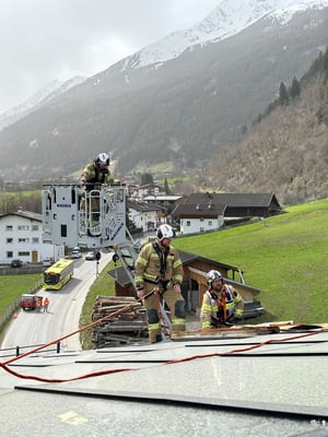 Um die Mittagszeit wurde der Kommandant der Feuerwehr Neustift telefonisch von einem Hotelier verständigt, dass die Solaranlage des Hotels aufgrund des starken Windes herabzustürzen drohte. Über die Leistelle Tirol alarmierte dieser die Mannschaft per Kleineinsatz. Gesichert über Fixpunkte am Dach und über die Drehleiter fixierten die Feuerwehrmänner die Solaranlage. Diese Arbeit gestaltet sich durch den starken Wind als langwierig, erst nach ca. zwei Stunden konnte dieser Einsatz beendet werden.